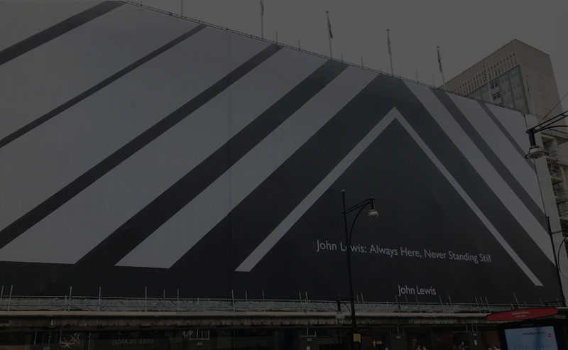 THE BRIEF The works required the installation of a full scaffolding structure covering the main two main elevations. Understandably John Lewis was concerned about the risk of passers by assuming the store was closed and the resulting loss of business. Embrace Building Wraps were instructed to deliver the giant wrap for John Lewis by the main building contractor Conamar Building Services. We have the experience and skill sets in place to deliver such a large scale project at a unique and busy location,